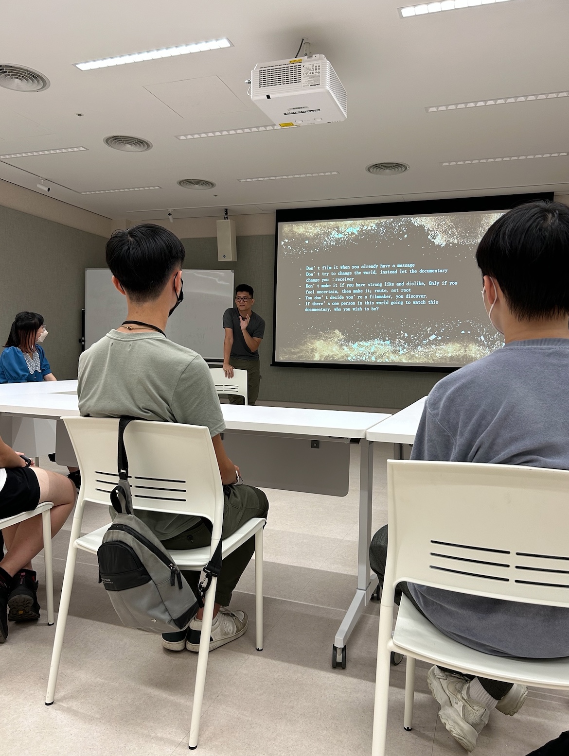 對多數青少年而言,紀錄片也許仍是相對陌生的影像類型,但克發導演引導同學從自身感受出發。他鼓勵大家思考:自己喜歡什麼樣的電影?偏好怎麼樣的影像敘事?對劇情片與紀錄片的想像有什麼差異?比起追求嚴謹的定義,從個人的經驗、情緒與觀看出發,更能找到貼近自己的切入角度。