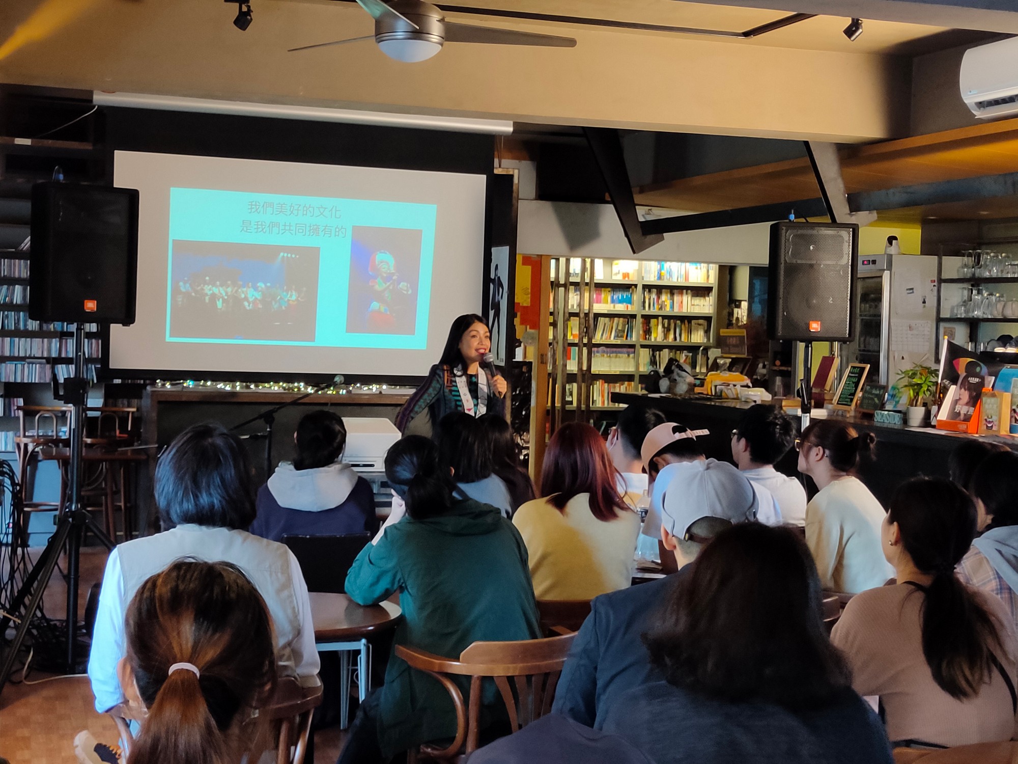 在進入海洋議題前,阿洛先反問學生:我們是否真正認識生活在這座島上的人?他指出幾起因不了解原住民文化而產生的誤解事件,提醒學生對文化的「模糊認識」可能帶來的傷害。阿洛也分享自己因語言與身分而經歷的掙扎與追尋:從童年因國語不標準而受到排斥,逐漸遺忘母語,到親人過世後才意識到與文化的斷裂。他以此為轉捩點,重新學習母語、恢復族名,並開始以母語創作音樂,成為傳承與再連結的重要載體。
