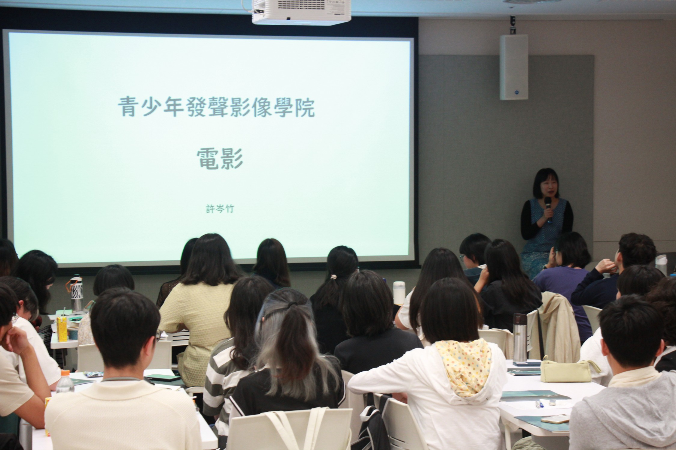 談到最初的動態影像形式,手翻書、魔術幻燈等基於視覺暫留原理的器具,可被視為今日動畫與電影的雛形。課堂中除了回顧這些歷史脈絡,岑竹老師也向同學提出一個關鍵問題:電影是否一定要以「劇院公開放映」的方式呈現?而我們對「電影」的直覺認知,是否其實受到某些固定框架限制?這堂課的另一個重點,便是在拆解這些看似理所當然的想像。