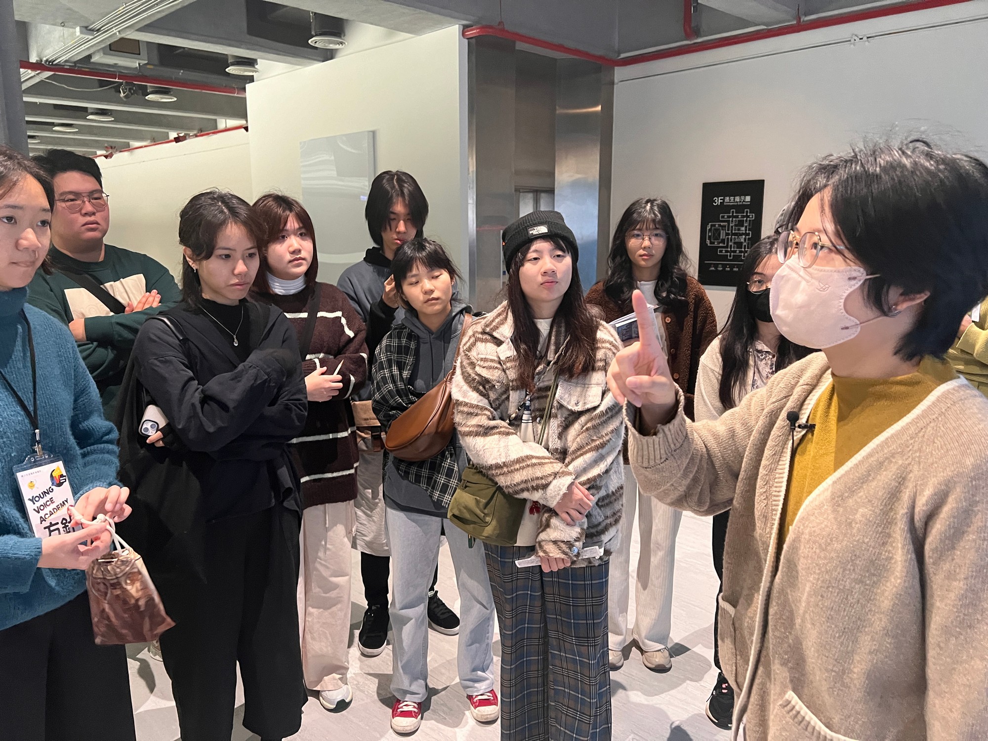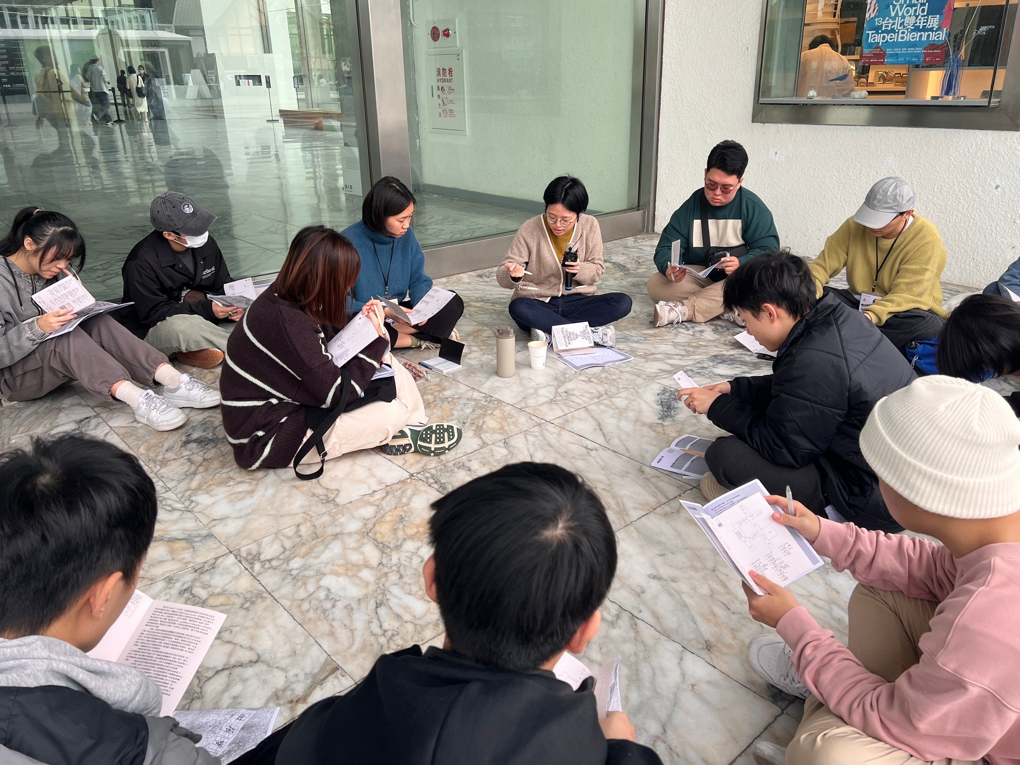 為期三天兩夜的策展工作坊,首日安排走訪當代藝術展覽現場。今年邀請具策展與創作經驗的藝術家張文瑄,帶領同學參訪台北市立美術館的「台北美術獎」與「台北雙年展」兩檔展覽。
