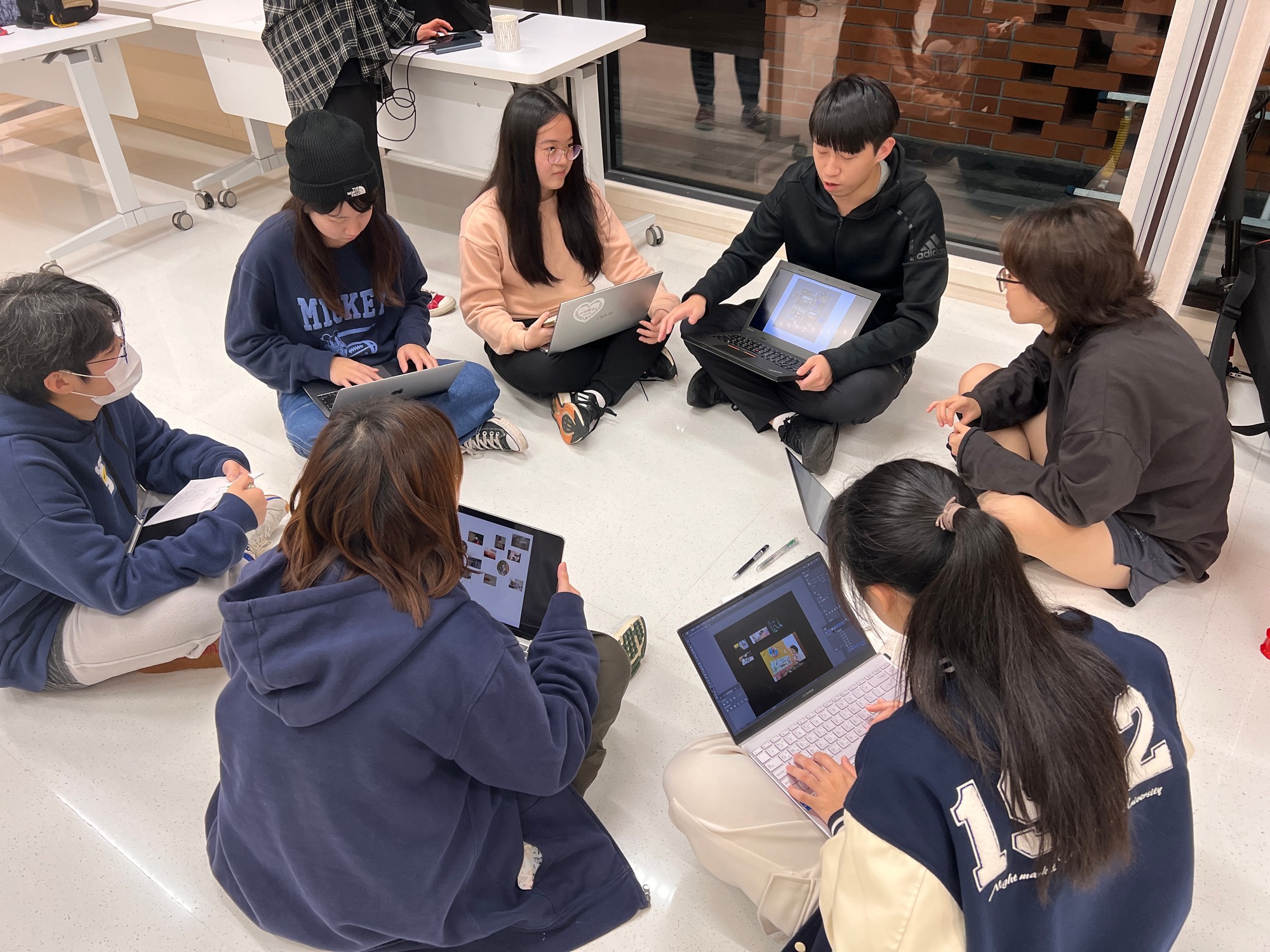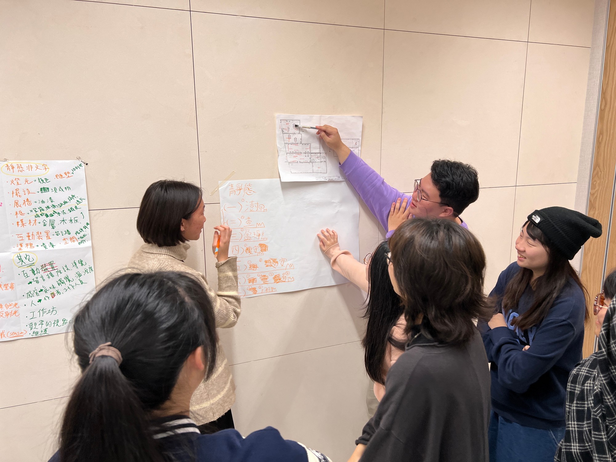 同學吸收回饋後,需再次整合思路、調整設計概念。由於成果展為聯展形式,展區之間的協調與互動也成為重要課題。經過一夜的討論與修正,最後一天為正式提案發表。學員們需向講師及同儕說明最終設計方案,並依據回饋完成定案,進入展覽製作階段。